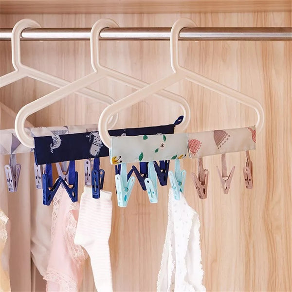 Portable Cloth Hanger Rack Multifunctional Towel Socks Drying Clothespin with 3 Clips