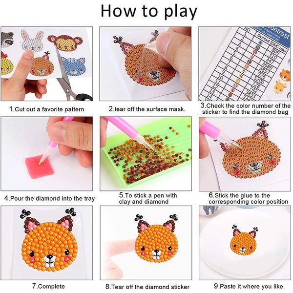 عدد ٩ قطع استكرزبعد الانتهاء يمكن لصق المنتج على اي شئالحجم بالصورهDiamond Embroidery 5D Stickers For kids