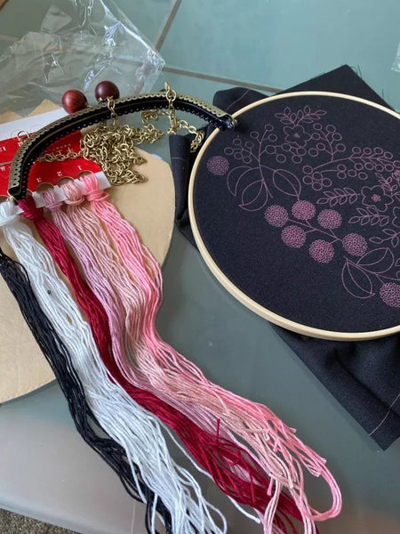 Ribbon embroidery bag kit, unfinished, need sewing by yourself.