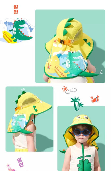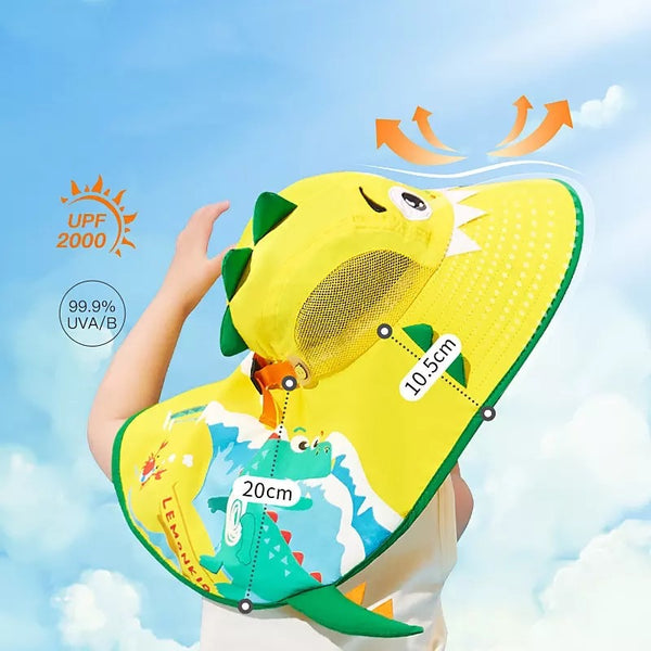 Kocotree Wide Brim Children Sun Hat Kids Bucket Cap Summer Beach Girls Travel Outdoor Fashion Cute Dinosaur Boy Casual Sun Hats