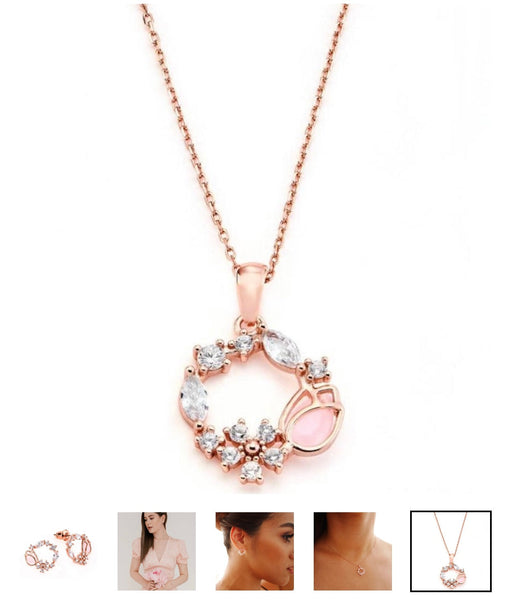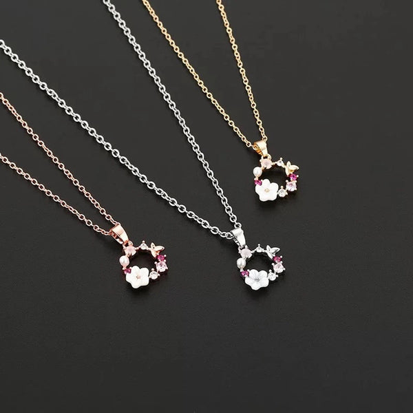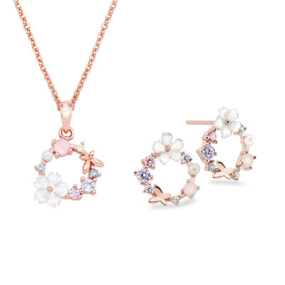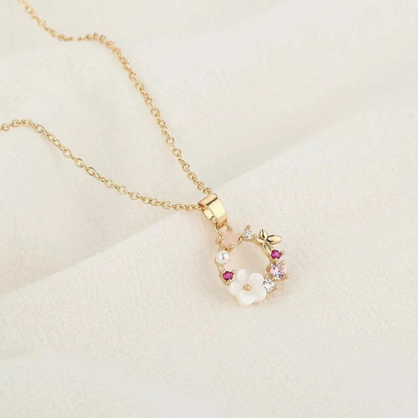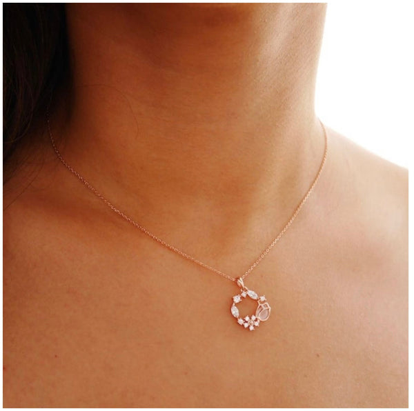 This romantic and elegant floral wreath necklace comes in 2 different colors. Its lovely spring design gives an elegant touch to your look. This beautiful pendant is also available as part of a set that you can treat yourself to or as a gift to someone special.