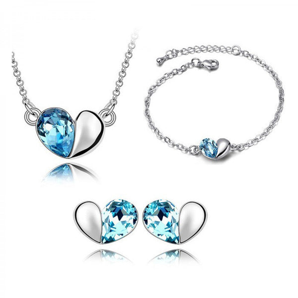Heart Inspired Necklace Earrings and Bracelet Set with