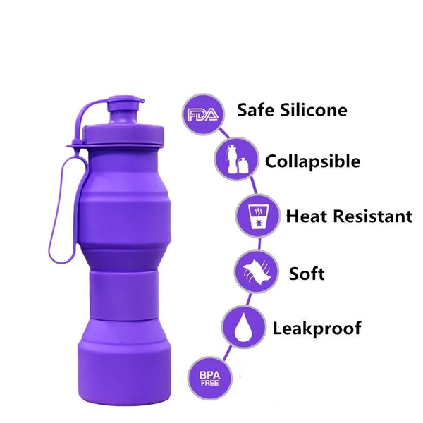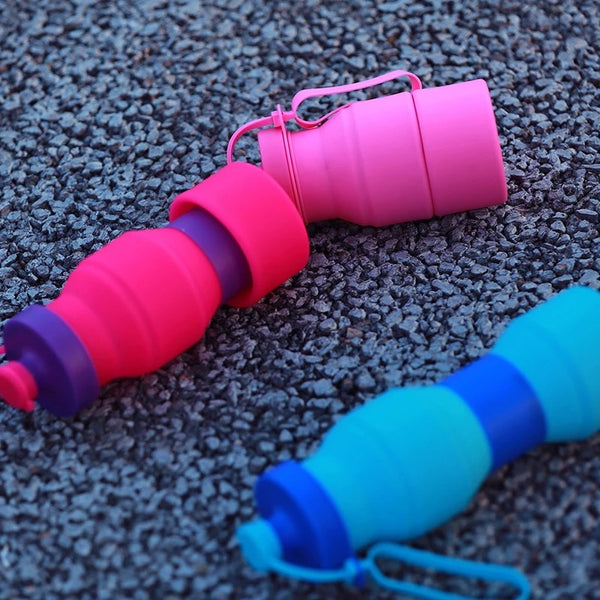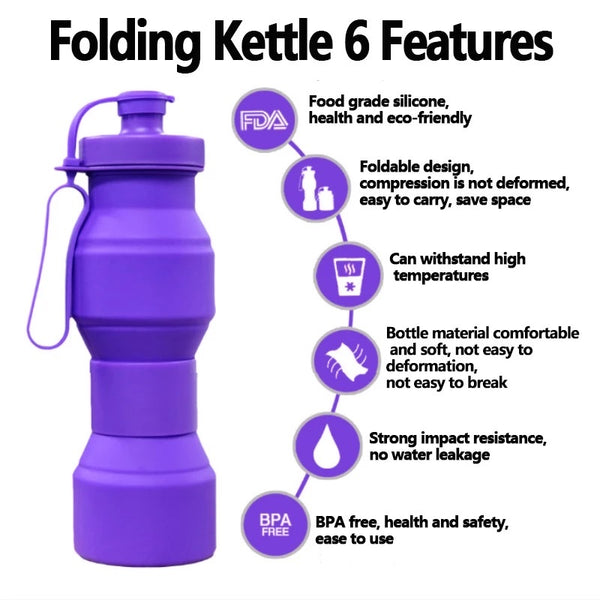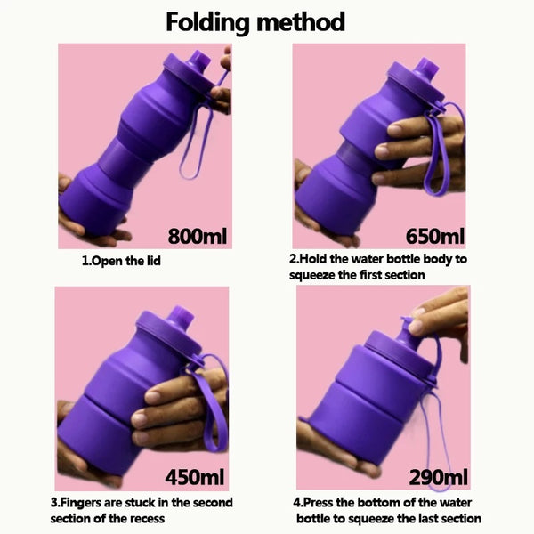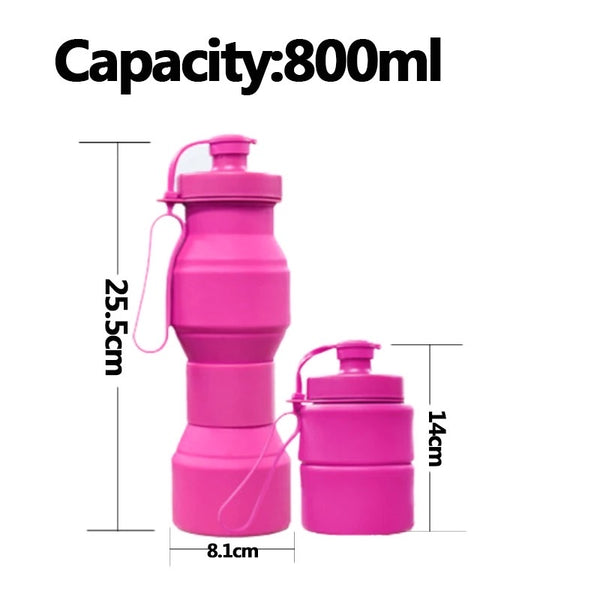 Food Grade 800ML Silicone Collapsible Water Bottles Travel Folding Cars Portable Kettle My Foldable Sport Drink Bottle