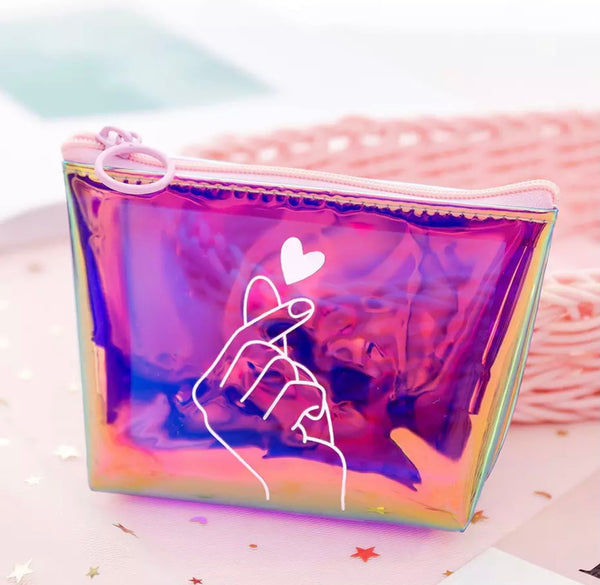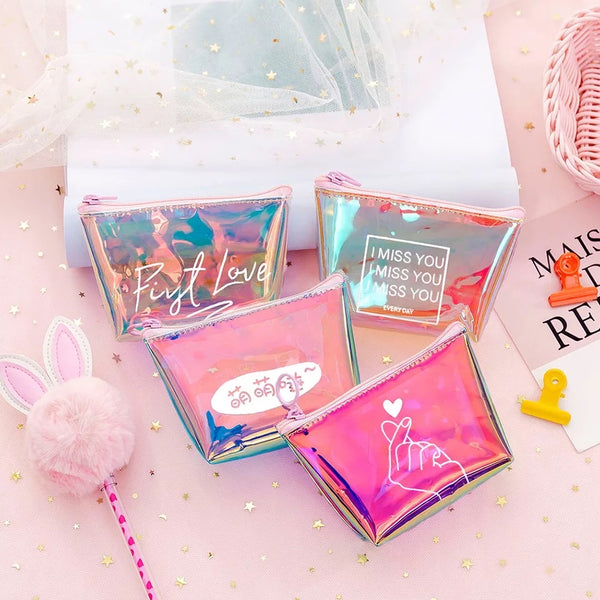 Laser Dazzle Color Zero Wallet Keychains Data Cable Key Bag Key Chain Girl Heart Hand Bag Zipper Storage Bag Key Rings
