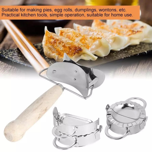قالب فطيرة صنع قالب من الفولاذ المقاوم للصدأ مجموعة صانع فطائر يدوية مع أداة تغليف الزلابية